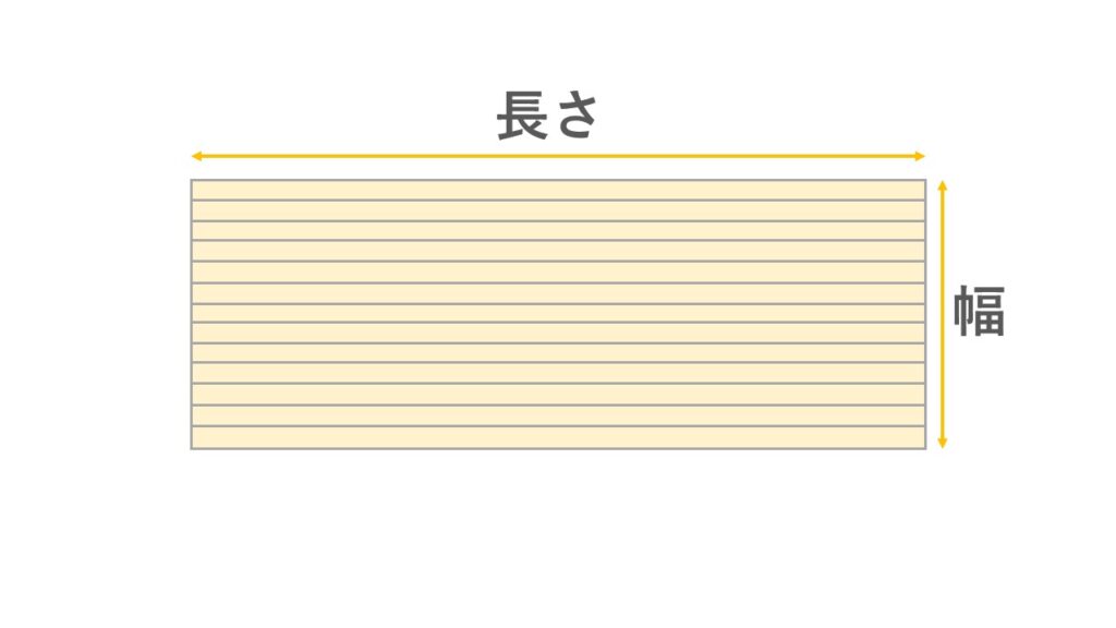 プラダンのサイズは、層の筋の方向を長さ、それに垂直な方向を幅として表します。