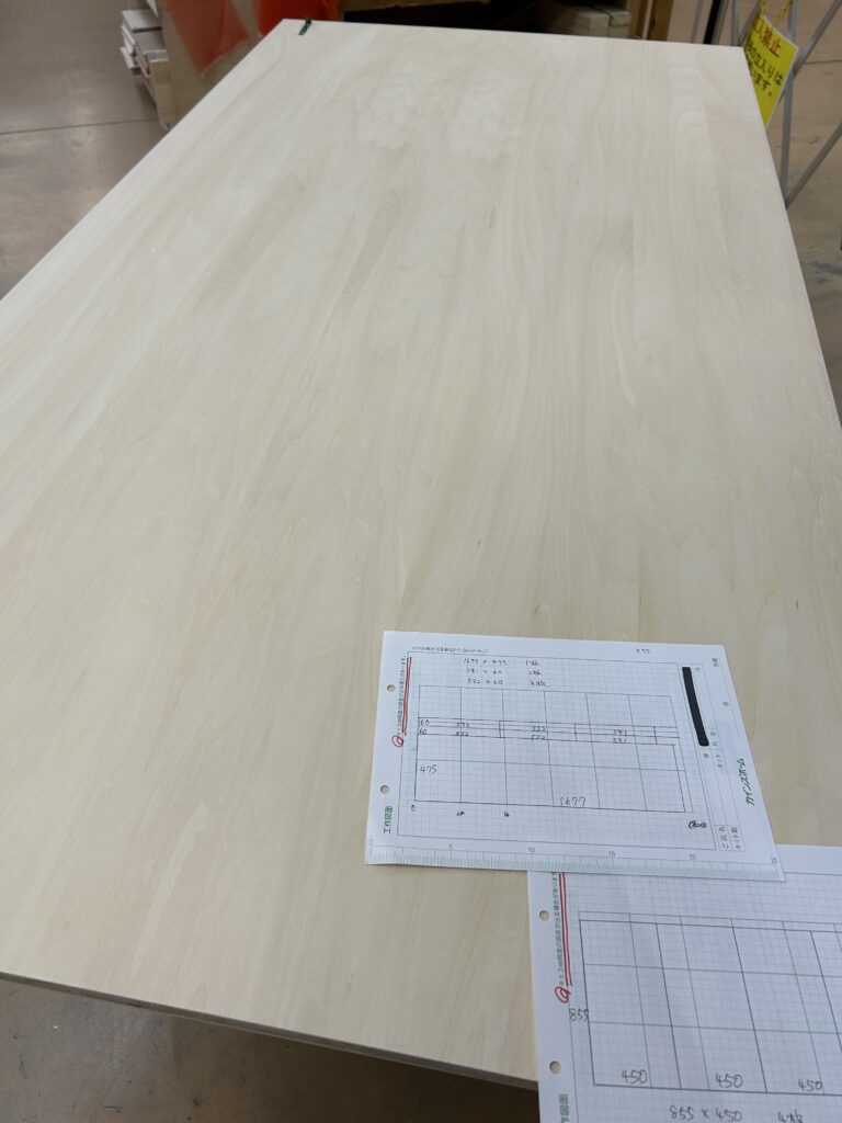 シナ合板と比べると表面は少し毛羽立っており、そのまま手の触れる所へはあまりおすすめ出来ません。